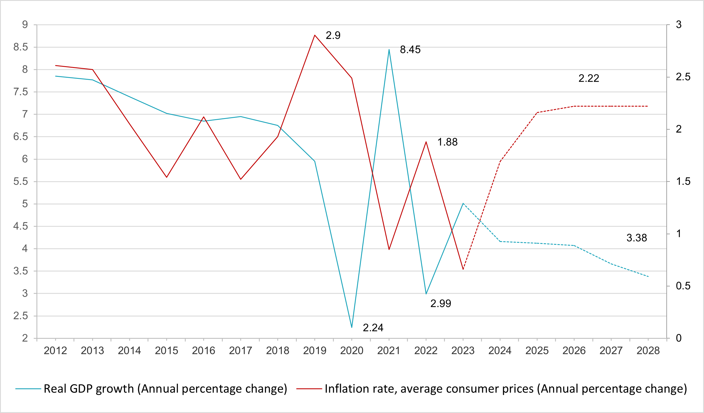 Graph 2. China’s GDP growth from 2012-2028 (projected)
